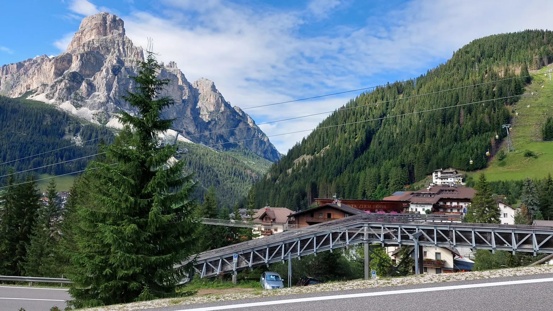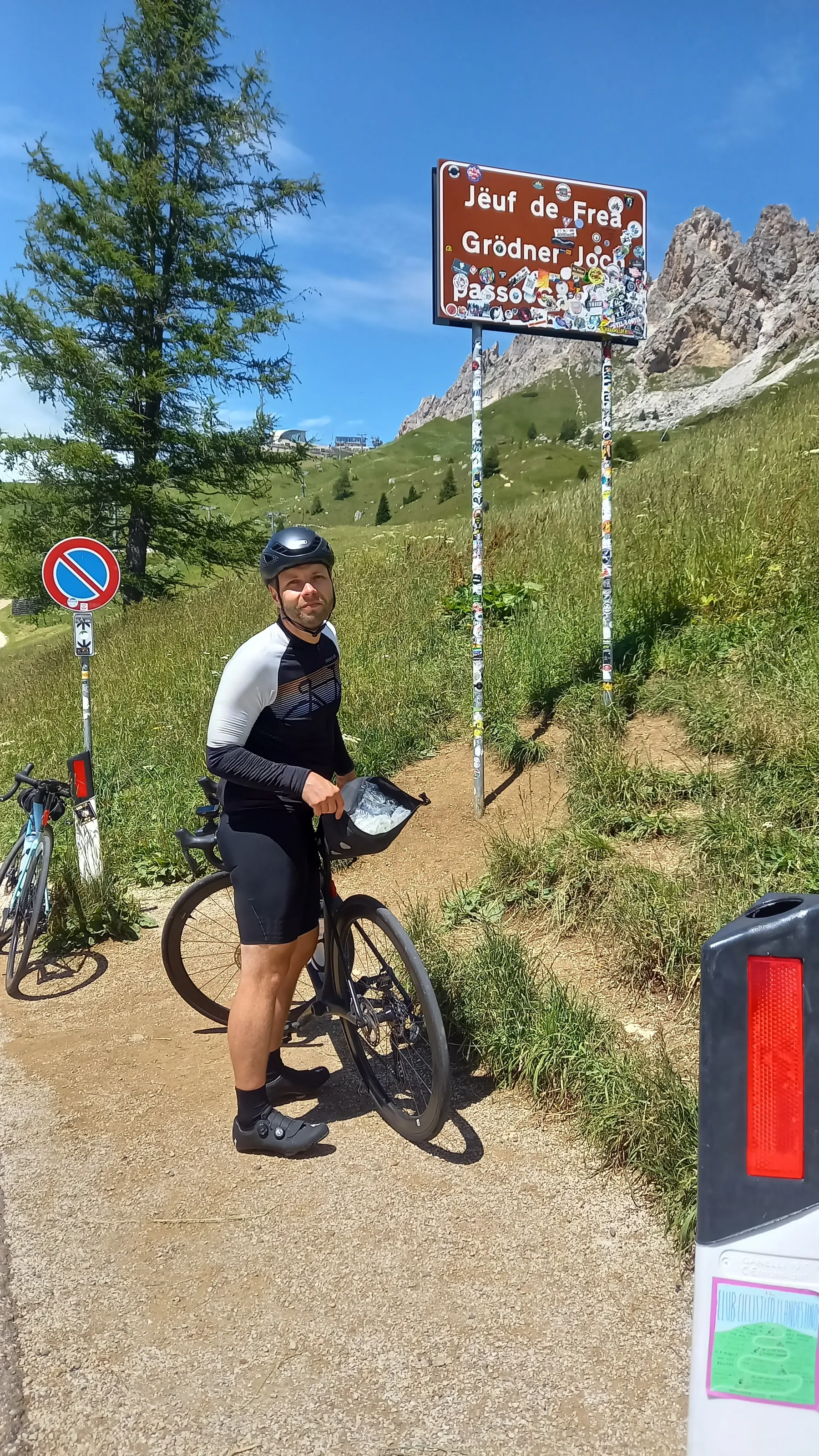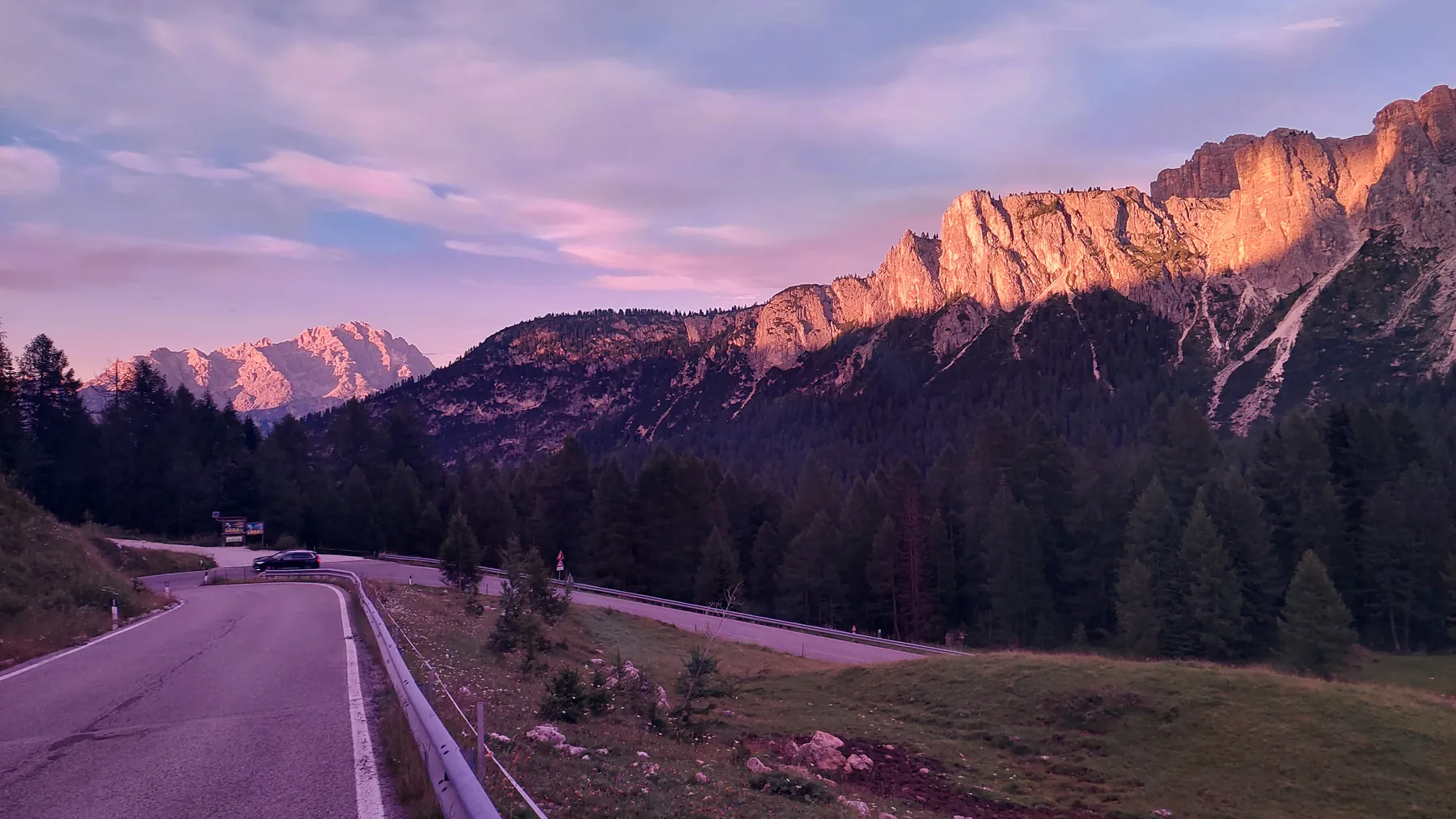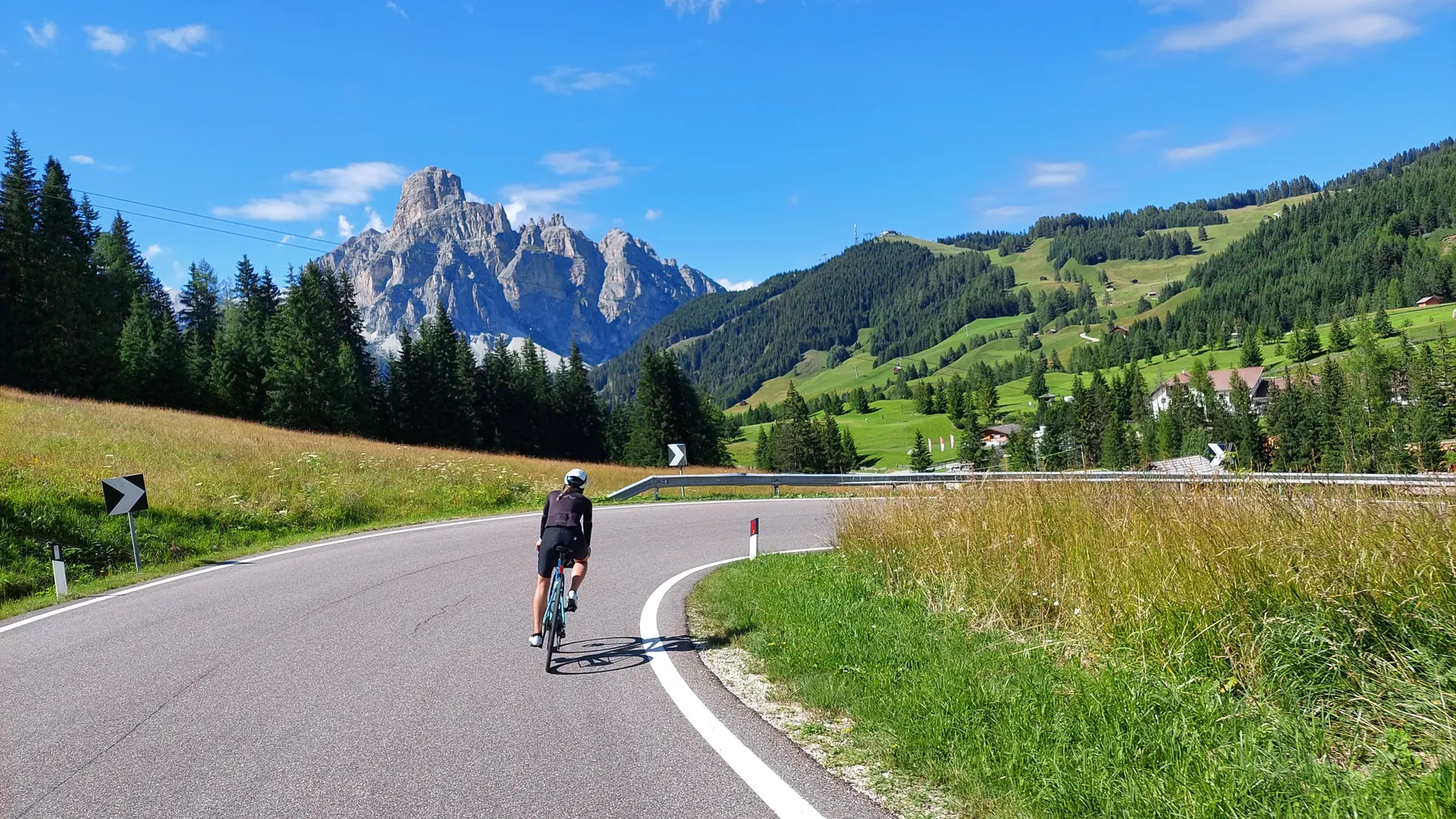 Vom Start weg ging es ans Eingemachte. Es galt die “glorreichen Sieben” zu überwinden: Über den Falzarego und Valparola arbeiteten wir uns hinein in das Herz der bleichen, schroffen Felswände. Die klassische Sella-Runde mit Grödnerjoch, Sellajoch, Pordoi und dem doppelt servierten Campolongo (man gönnt sich ja sonst nichts!) war Fahrspaß pur – Kurvenrausch vor einer Kulisse, die fast schon surreal schön wirkt.
