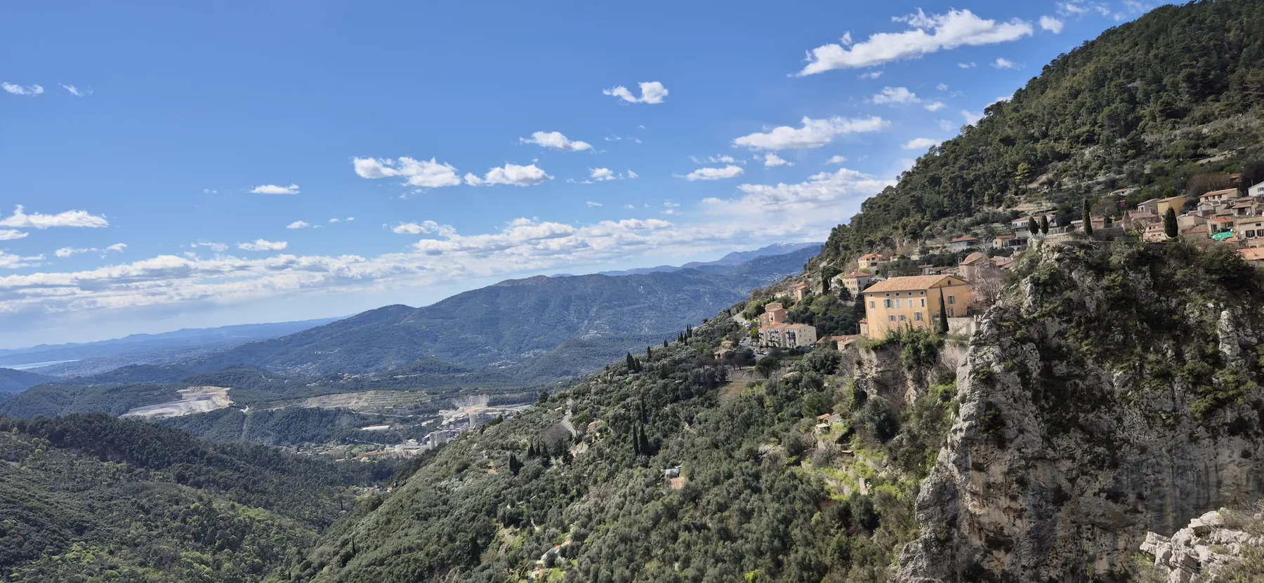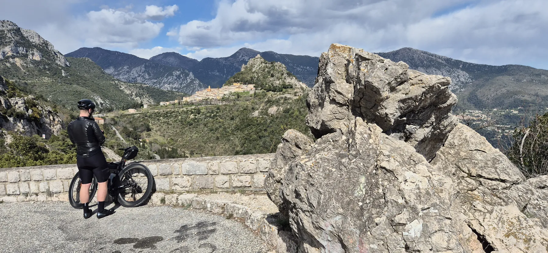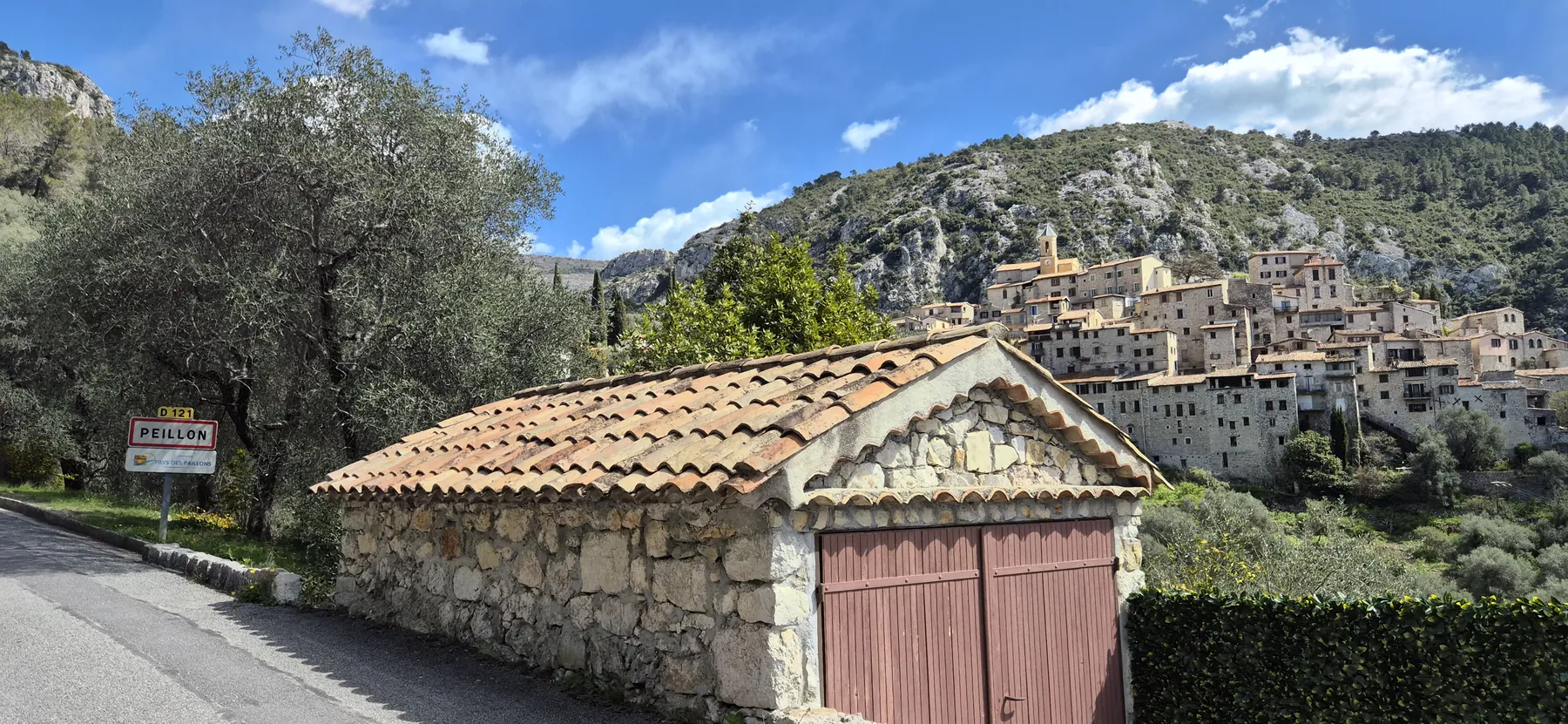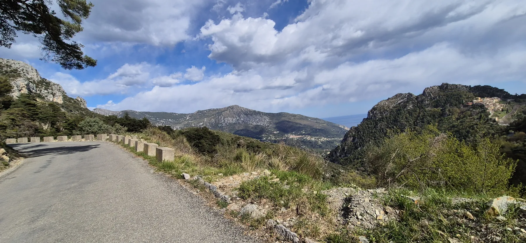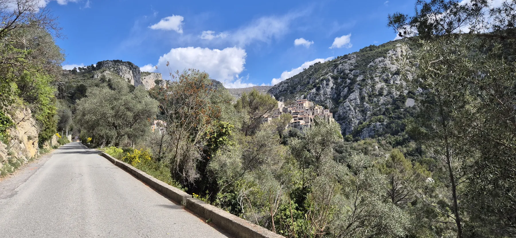 Nachdem wir La Trinité hinter uns gelassen hatten, änderte sich die Kulisse schlagartig. Es ging bergauf Richtung Peillon – ein Anstieg wie aus dem Bilderbuch: enge Serpentinen und eine Straße, die sich wie eine Schlange um den Bergrücken windet. Jede Kurve bot eine neue Perspektive, jedes Mal ein kleines „Wow“. Peillon selbst? Ein mittelalterlicher Traum aus Stein.