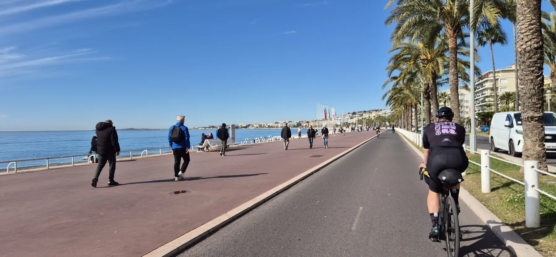 Tag 4 an der Côte d’Azur und wir haben heute die „Vence-Pretzel“ gebacken! Der Start in Nizza war eher Slalom als Cruisen: Der Küstenradweg ist zwar gut gemeint, gleicht aber eher einem bewegten Hindernisparcours. Zwischen Rollkoffern, Promenaden-Flanierern und unvorhersehbaren Haken mussten wir höllisch aufpassen, niemanden vom Asphalt zu fegen.