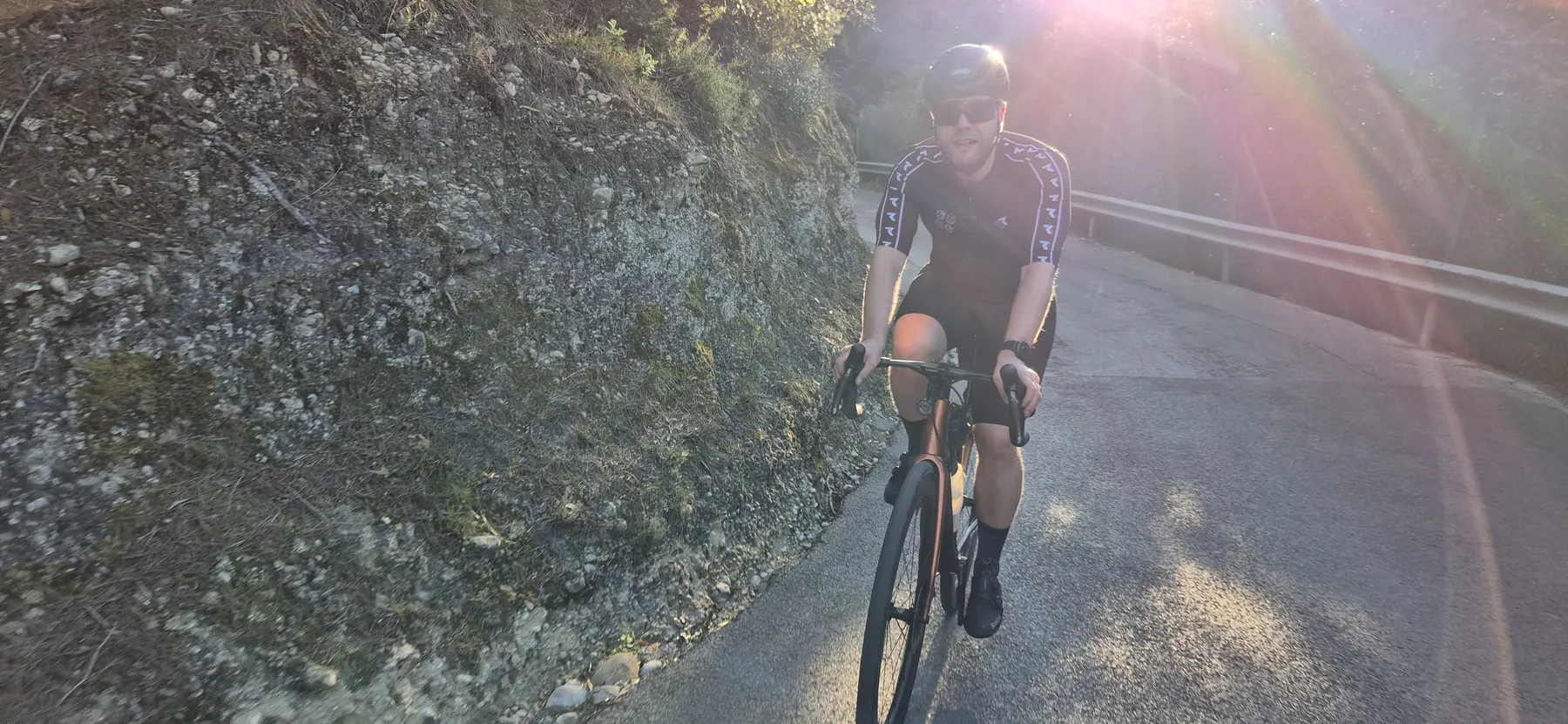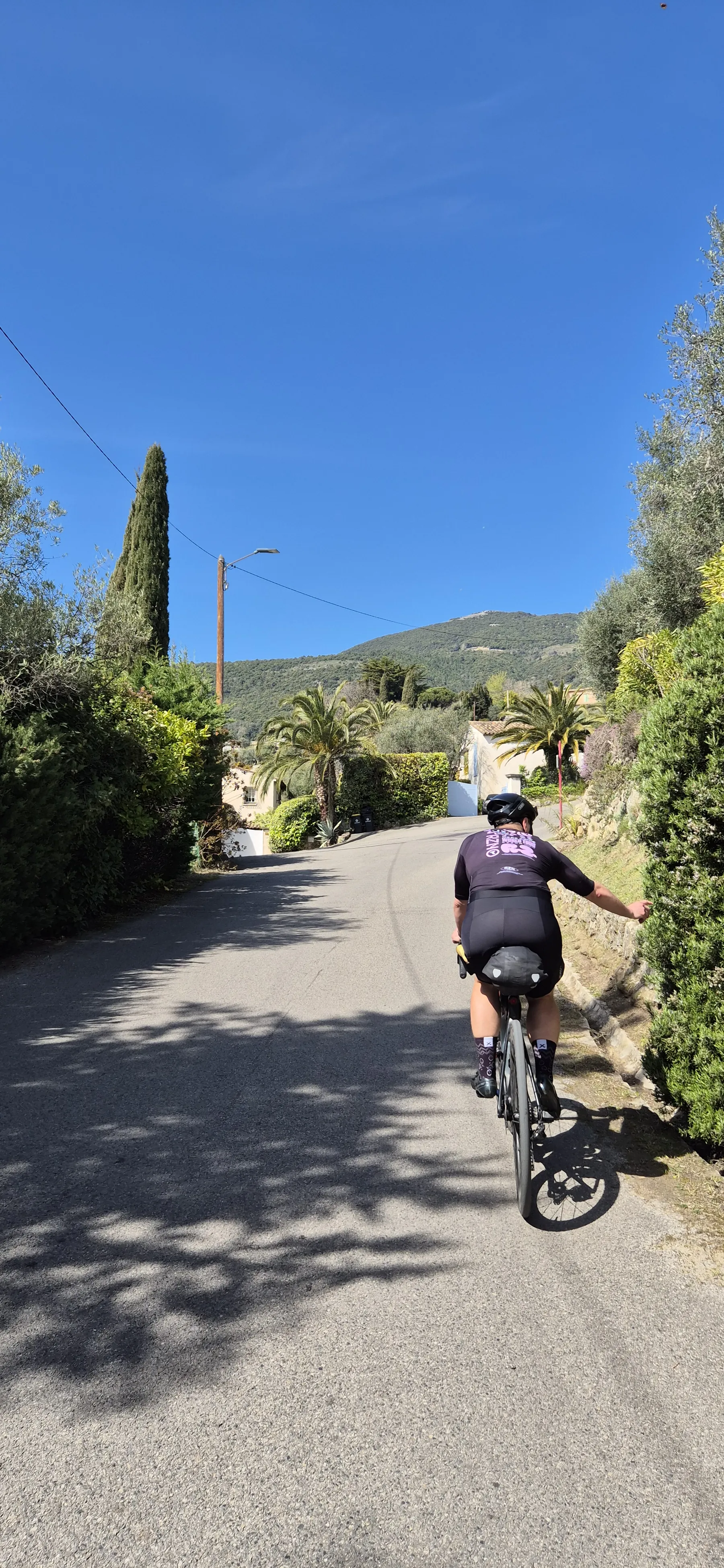 Der Rückweg über die Nordwestauffahrt zum Col de Vence bot eine geniale neue Perspektive zu den Vorjahren. Aber weil wir den Hals nicht voll bekamen, mussten nach Vence noch zwei, drei „Hügelchen“ dran glauben. Ein letzter Versuch auf der V65 Richtung Nordost klappte dann sogar reibungslos – bis zum großen Komoot-Finale: Kurz vor Gattières schickte uns die App zielsicher auf eine Waldtreppe. So what – das Rad zu tragen statt zu fahren sind wir ja gewohnt. Das Tour-Ergebnis? Ein perfektes GPX-Kunstwerk und ein Tag voller Wahnsinns-Eindrücke!