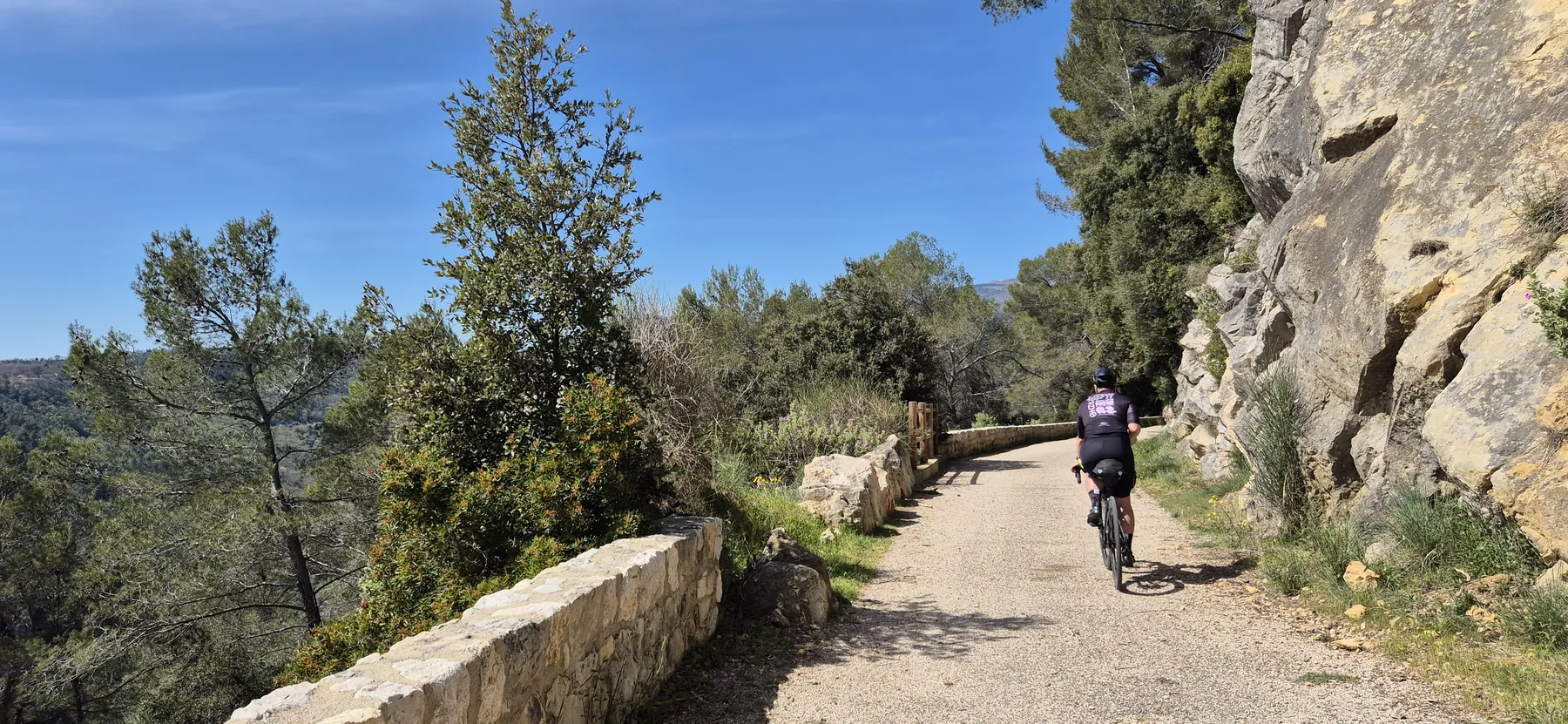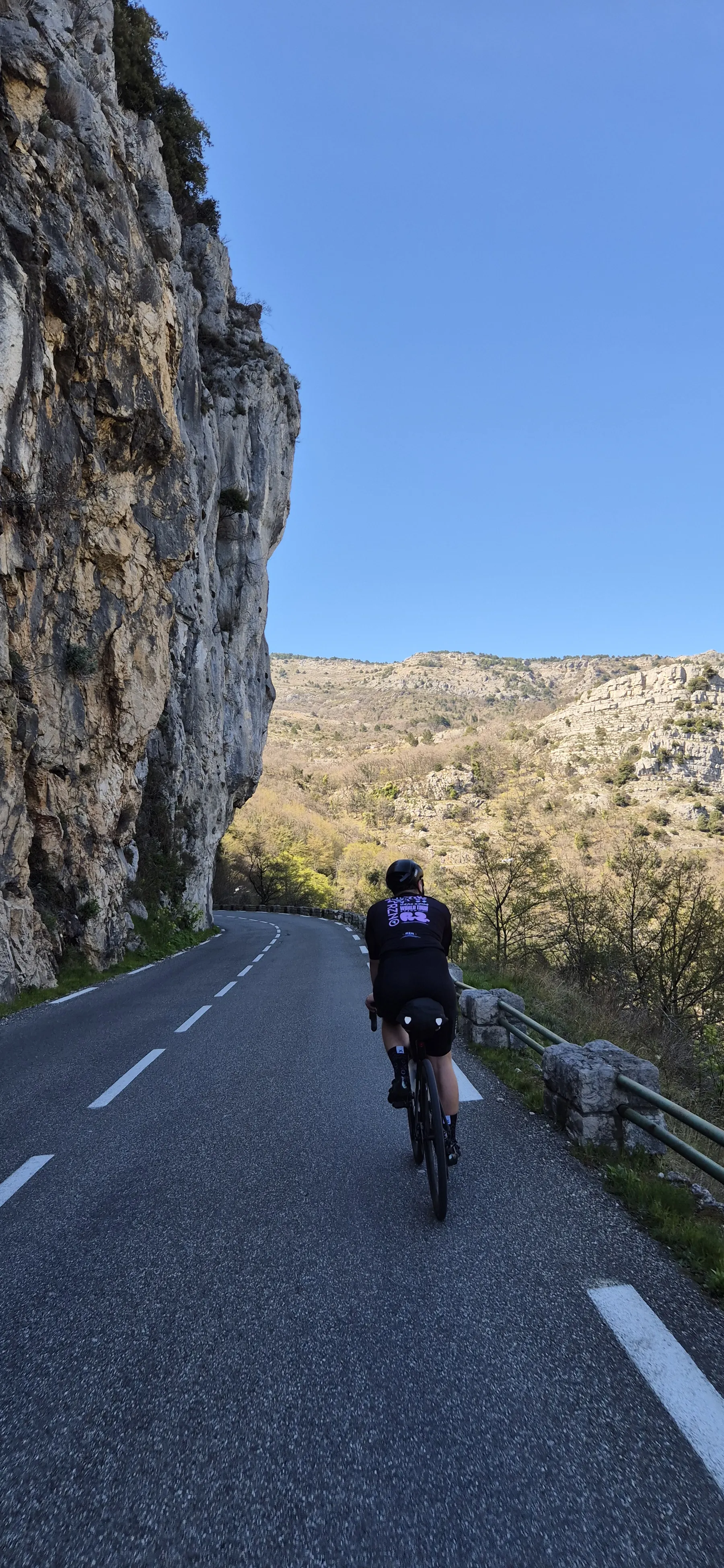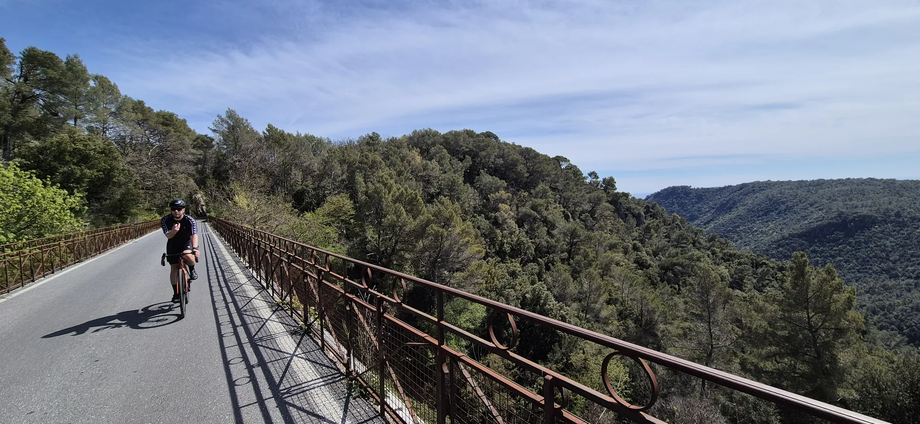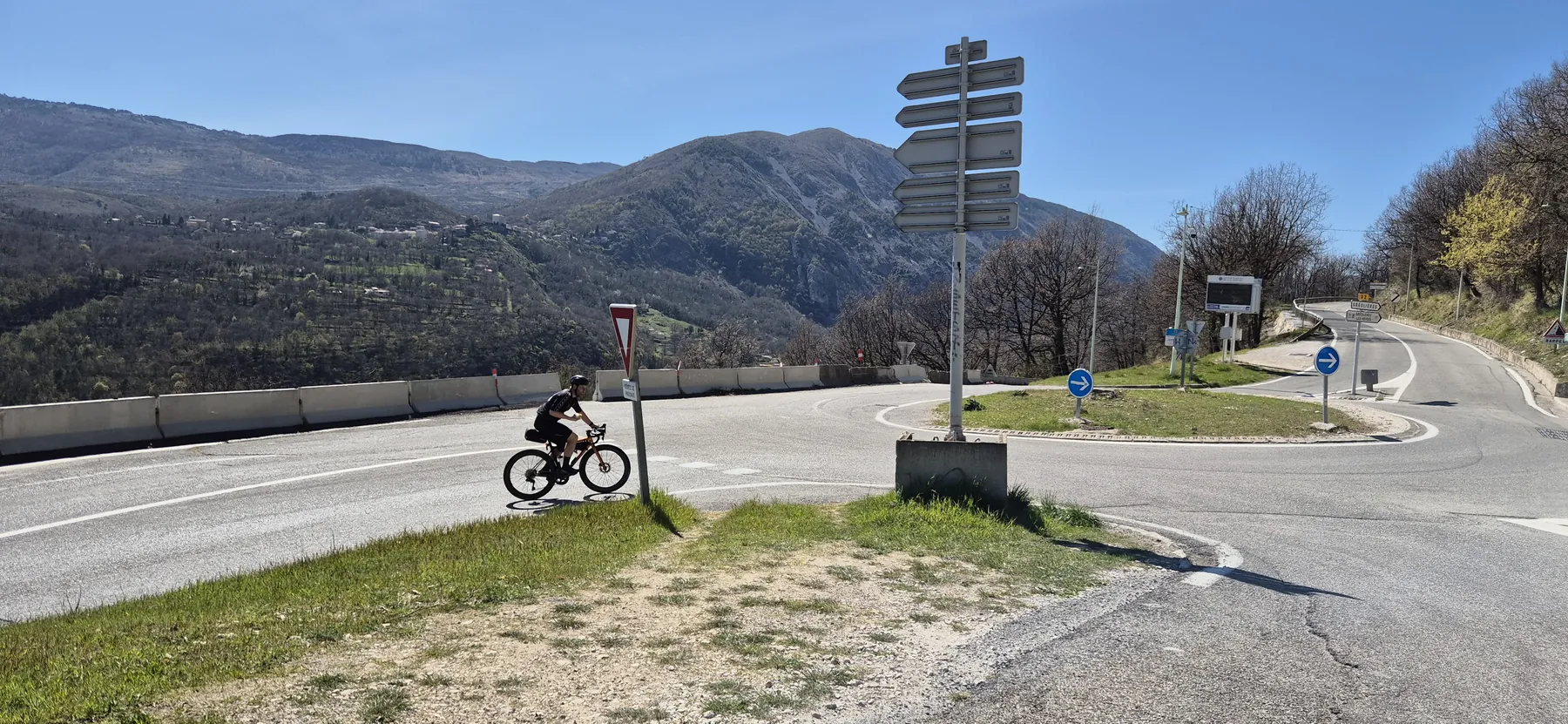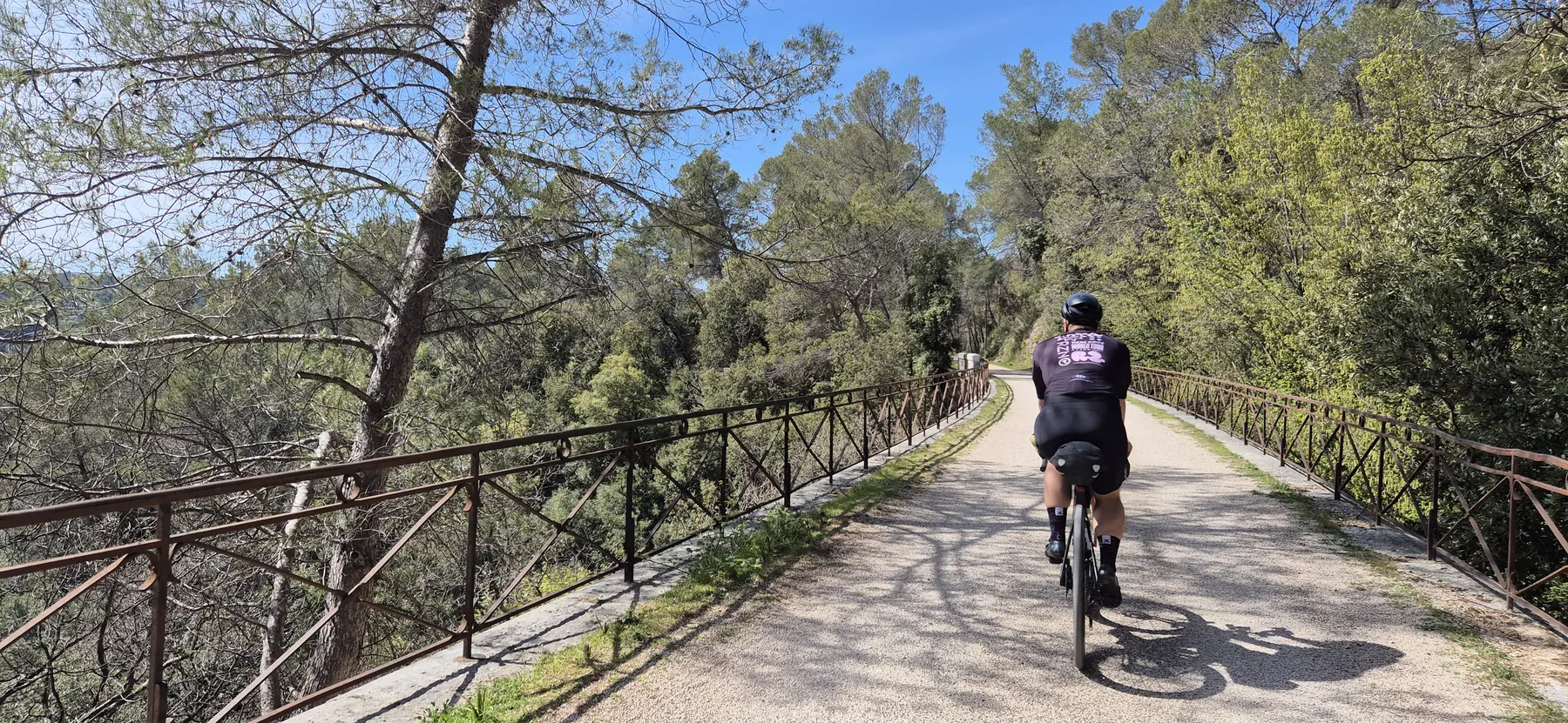 Richtig spannend wurde es bei der Jagd nach der V65, der Var-Küstenradroute. Die Idee einer stillgelegten Bahntrasse klingt nach purer Idylle, entpuppte sich aber als bockiges Labyrinth. Wir sind mit so viel Karacho an den versteckten Abzweigungen vorbeigeprescht, dass wir uns im Fünf-Minuten-Takt fluchend auf der Hauptstraße wiederfanden. Nach dem dritten unfreiwilligen Loop haben wir das Projekt V65 vertagt und stattdessen die Gorges du Loup ins Visier genommen. Eine bombastische Kulisse aus zerklüfteten Felsen und tiefen Schluchten! Das Etappenziel Gourdon ist zwar bildhübsch, aber so dermaßen auf Touristen getrimmt, dass man sich fast wie Requisiten im Freilichtmuseum vorkommt. So haben wir uns heute den Trubel des Stadtkerns geschenkt und sind lieber direkt unterhalb vorbeigedonnert.