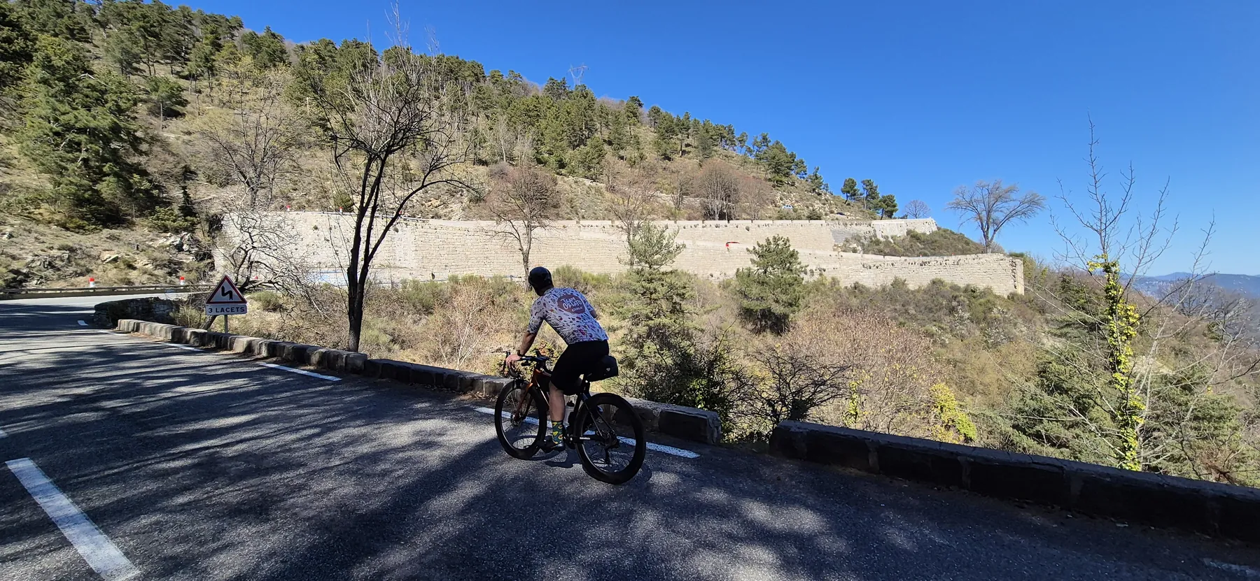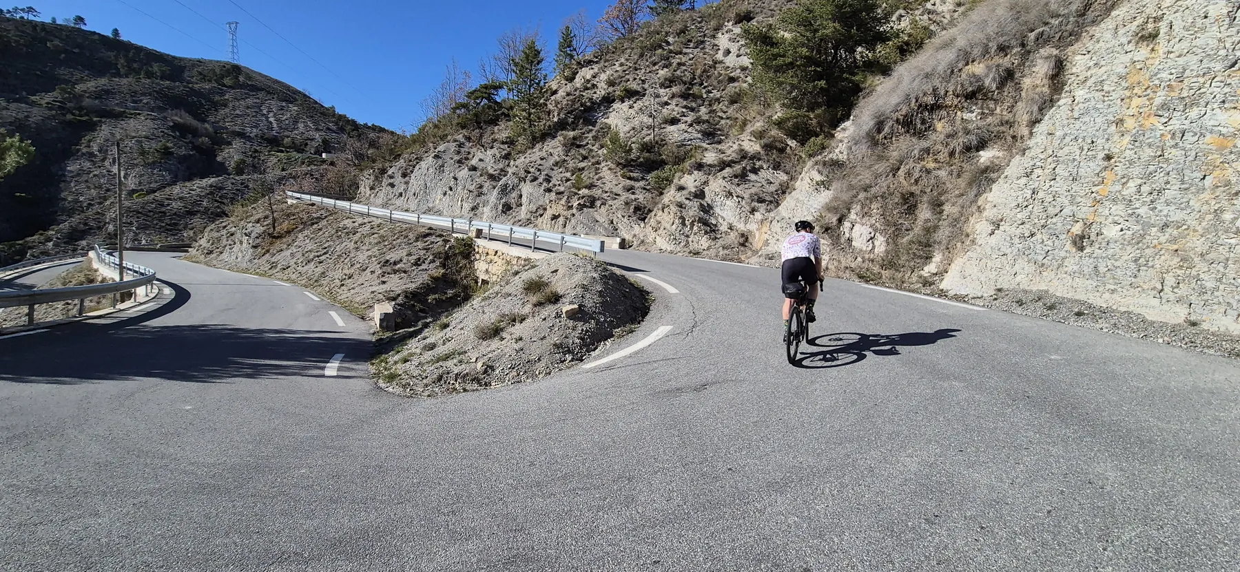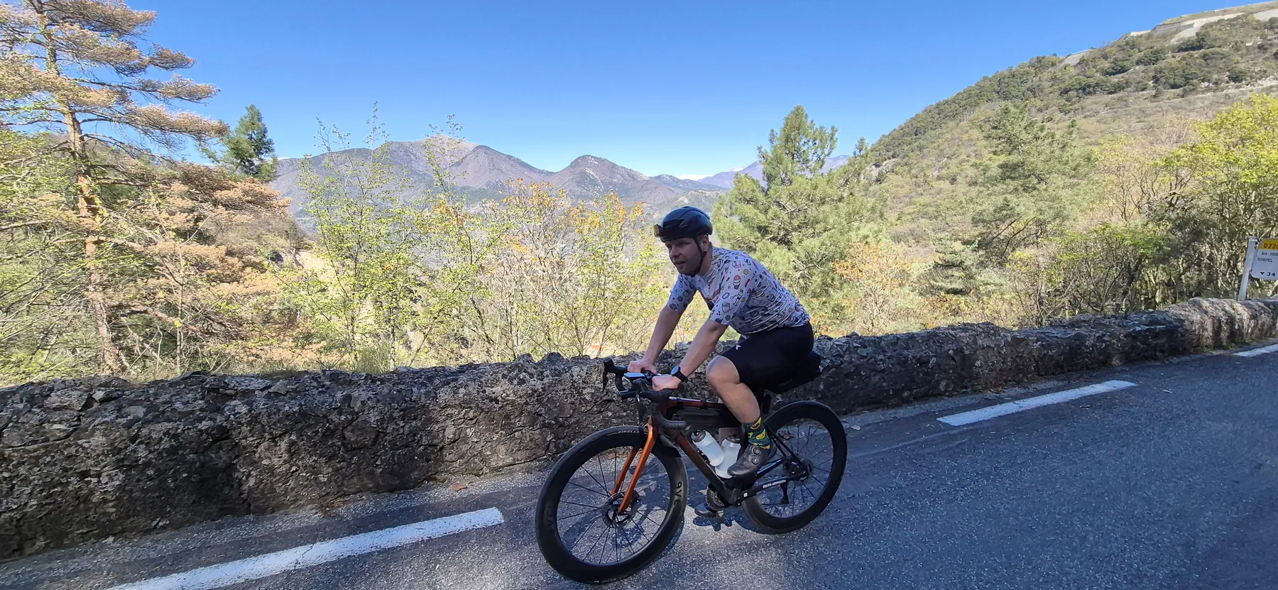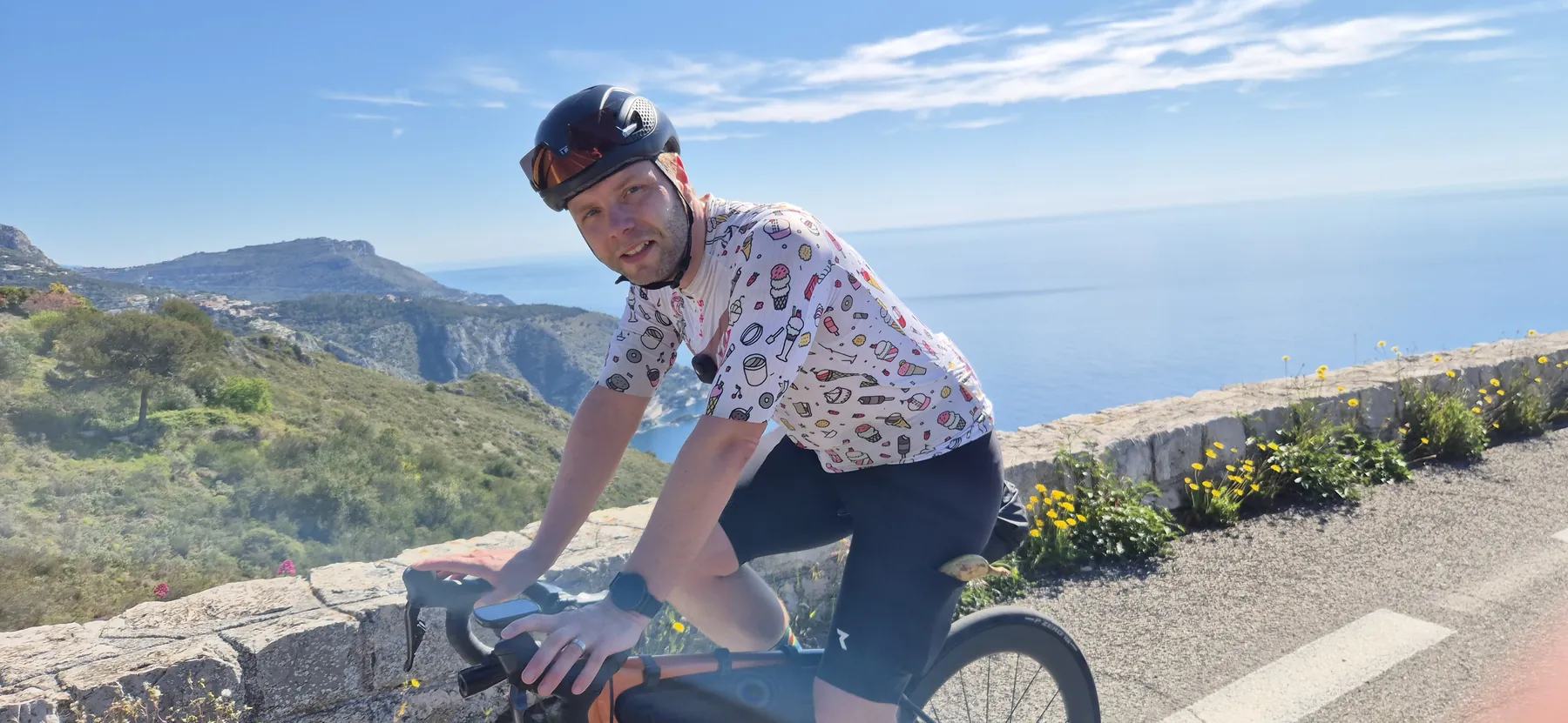 Die Region hier ist nicht umsonst das Mekka für Radsportler:innen. Heute hatten wir fast schon das Gefühl, Teil des Pelotons zu sein: Erst sind wir an einigen echten Profis vorbeigeschossen (oder sie an uns?), und wenig später kam uns auch noch der Mercan’tour Madone-Peille Granfondo entgegen. Die Atmosphäre war elektrisierend!