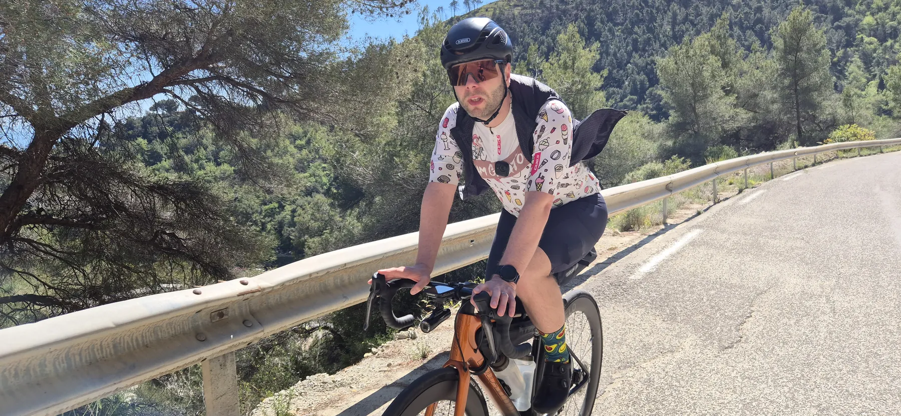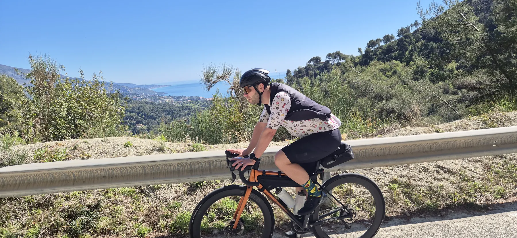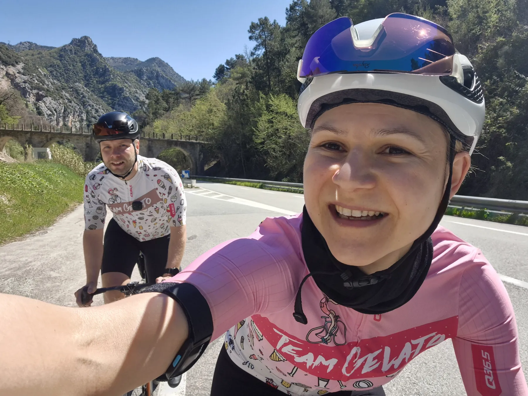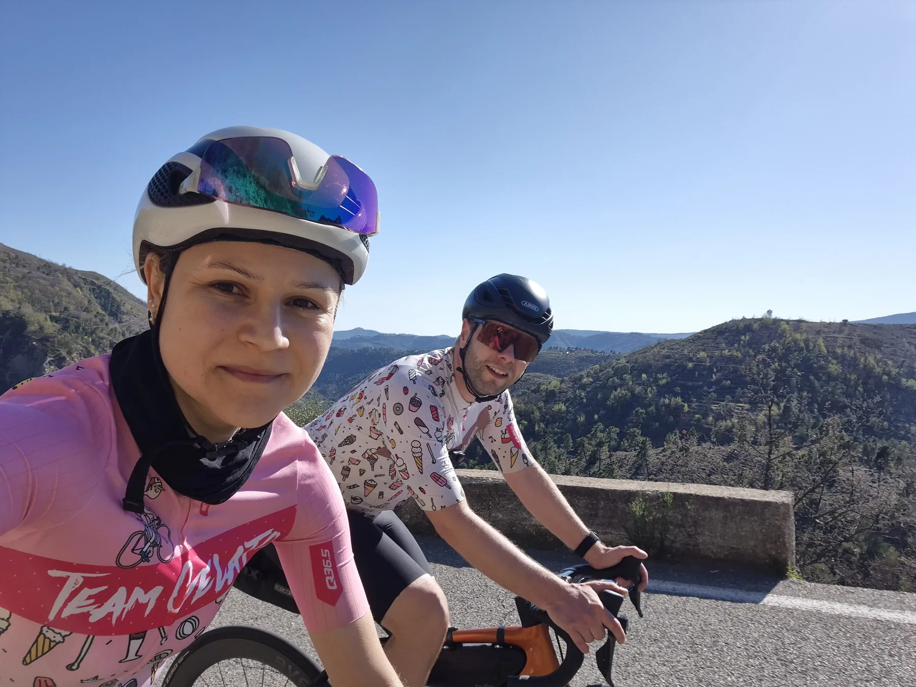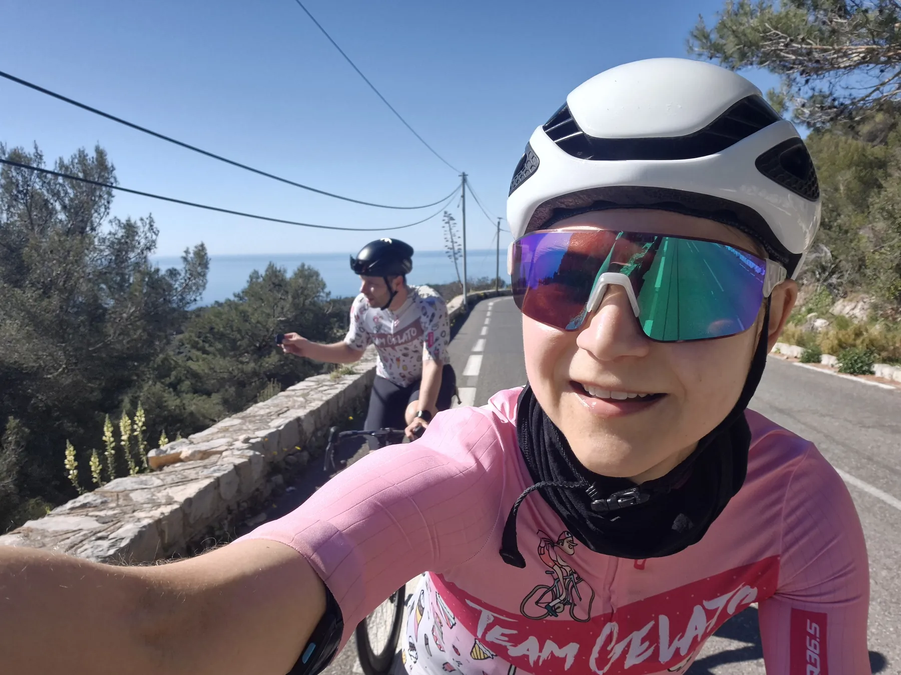 Zum Schluss noch ein kleiner Funfact für die Kategorie „Echte Radsport-Logik“: Mitten im steilsten Anstieg ist uns siedend heiß eingefallen, dass wir zwar absolut jedes erdenkliche Teil an Radequipment eingepackt haben, unsere Badesachen aber seelenruhig zuhause in der Schublade liegen. Tja, wer braucht schon das Mittelmeer, wenn man Serpentinen hat? Das sagt wohl alles über unsere Prioritäten aus… Aber wir bereuen bislang keine Sekunde unserer Urlaubsgestaltung (und haben das auch nicht vor)!